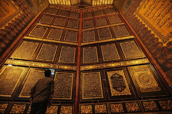 Dipahat di atas kayu trembesi, dengan ukuran 177 cm x 140 cm x 2,5 m, Al Quran itu terpampang. Bait Al Quran Al Akbar namanya. Salah 1 dari 8 destinasi wisata religi di Palembang. Setiap ayat dibuat dengan huruf timbul berwarna kuning keemasan. Total terdapat 630 halaman yang dibuat dari sekitar 40 meter kubik kayu, Alquran raksasa ini memesona siapa saja yang melakukan wisata religi di Palembang