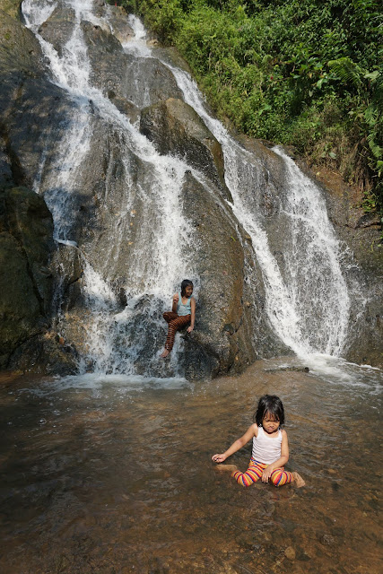 Di lokasi tersebut, hanya ada kami dan sepasang kekasih yang tampak bersantai di saung. Rasanya ini adalah curug di belakang rumah, curug pribadi sehingga foto-foto yang kami ambil hanya menampakkan kami sekeluarga.